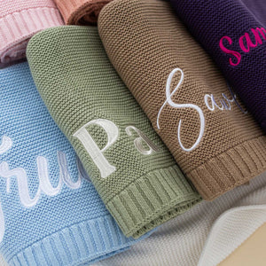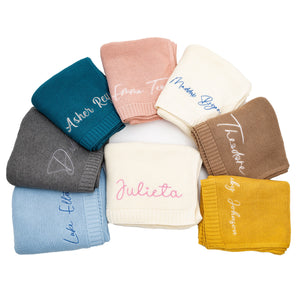 Snuggle Your Baby in Our Personalized Knit Baby Blanket with Embroidered Name—Pure Comfort and Charm!
