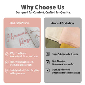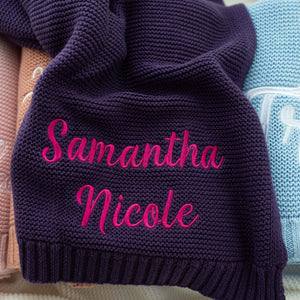 Wrap your little one in luxury with our 100% cotton knitted baby blanket—soft, breathable, and oh-so-cozy. Personalize this cherished gift with a name embroidered in high-quality thread, available in your choice of color and elegant font, creating a one-of-a-kind treasure for newborns and toddlers.