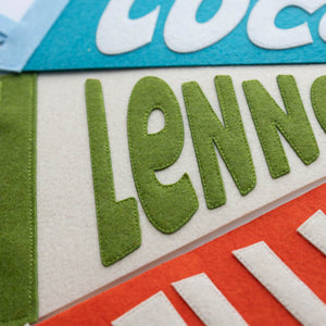 Personalized Felt Pennant – Custom Sewn Banner for Baby Room, Playroom, or Gifts