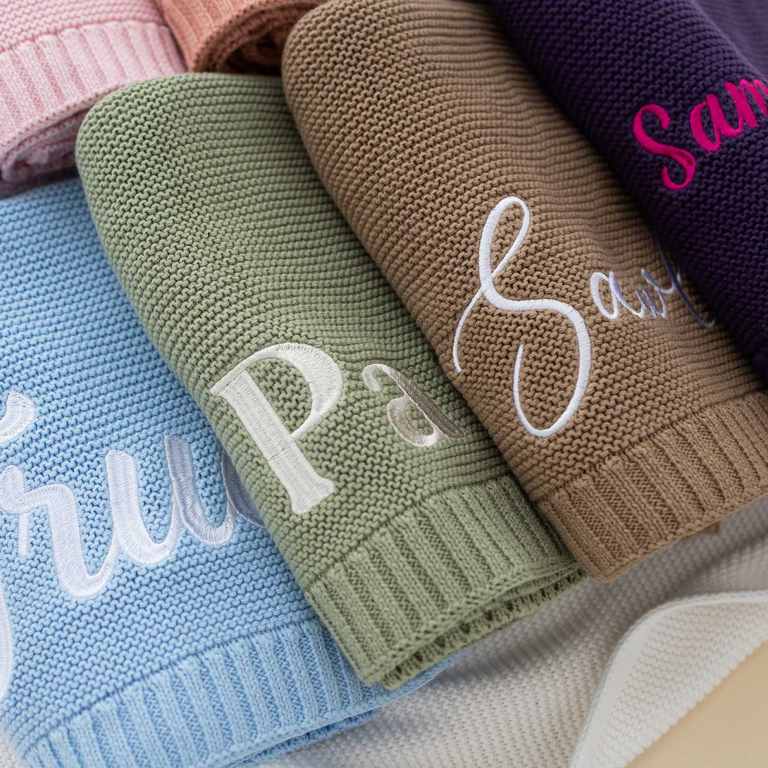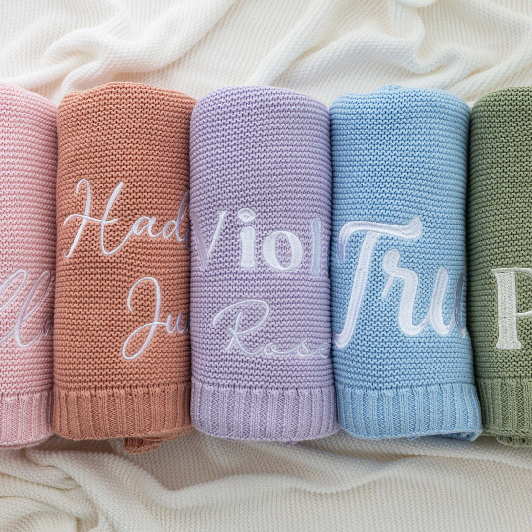 Wrap your little one in luxury with our 100% cotton knitted baby blanket—soft, breathable, and oh-so-cozy. Personalize this cherished gift with a name embroidered in high-quality thread, available in your choice of color and elegant font, creating a one-of-a-kind treasure for newborns and toddlers.